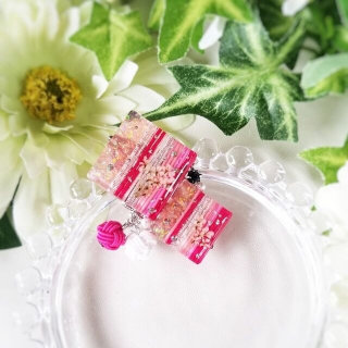 水引きの和風の優しいテイストを持ちつつ、キラッとレジンが輝いていて洋装に合わせても、軽やかにおしゃれ感をアップできます。
