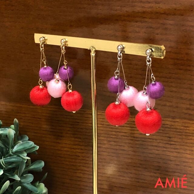 ハンドメイド作家の作品を購入できるminne(https://minne.com/)で、刺繍糸を巻いた巻玉のアクセサリー作品を展開されている【AMIÉ】さんをご紹介いたします。