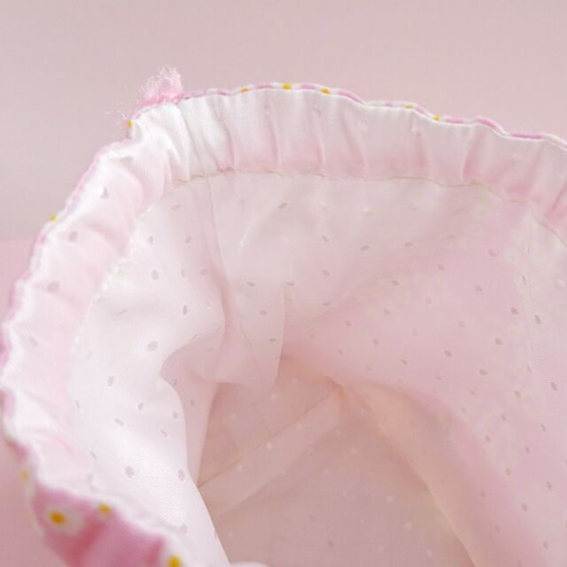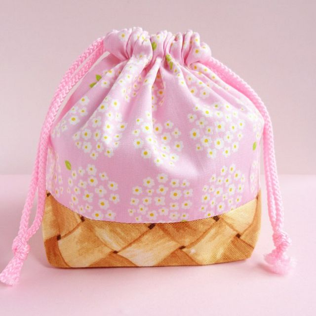 三毛にゃんさんのこちらの作品は、そんな編込みバスケットの生地を組合わせた切替しがおちゃれな巾着になっています。