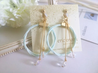 水引きを大きめのリングにして大胆に身につけることができます。水色の水引は縒られていて、波のうねりのような流れるような雰囲気になっています。