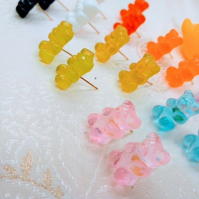 キュートなデザインのアクセサリーを展開されている「ひよ子」さんのご紹介は2回目。今回は新作のグミのような熊のピアスをご紹介いたします。