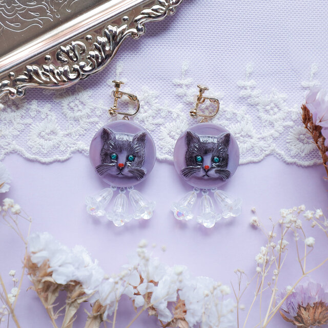 「 おめかし猫ちゃん 」イヤリング/ピアス